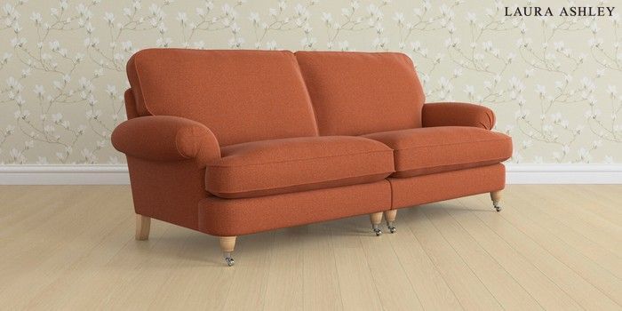 6.12.1 Buy Beaumaris by Laura Ashley 4 Seater Sofa Harley Terracotta Orange Low Chrome Castor - Light Oak from the Laura Ashley online shop Click here to use our website with more accessibility support, for example screen readers