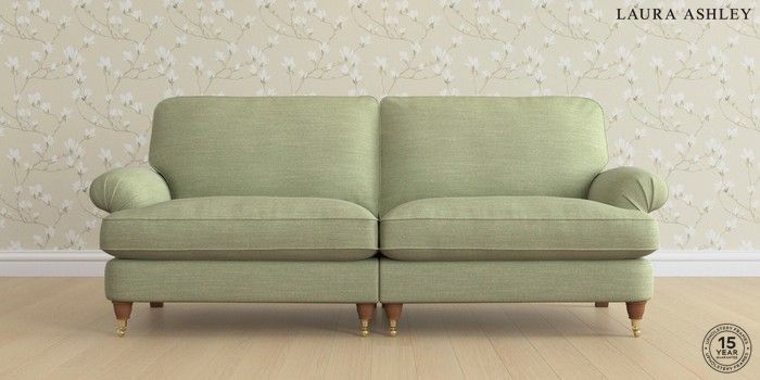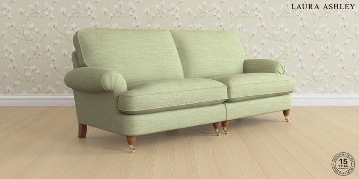 6.12.1 Buy Beaumaris by Laura Ashley 4 Seater Sofa Kinsham Hedgerow Green Low Brass Castor - Teak from the Laura Ashley online shop Click here to use our website with more accessibility support, for example screen readers