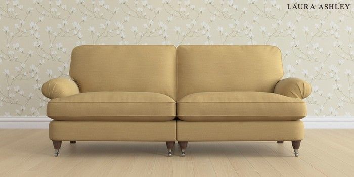 6.12.1 Buy Beaumaris by Laura Ashley 4 Seater Sofa Kinsham Ochre Yellow Low Chrome Castor - Chestnut from the Laura Ashley online shop Click here to use our website with more accessibility support, for example screen readers