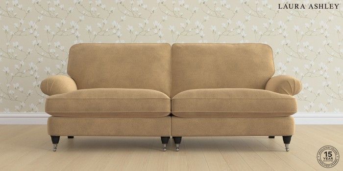 6.12.1 Buy Beaumaris by Laura Ashley 4 Seater Sofa Lundar Chenille Caramel Natural Low Chrome Castor - Black from the Laura Ashley online shop Click here to use our website with more accessibility support, for example screen readers