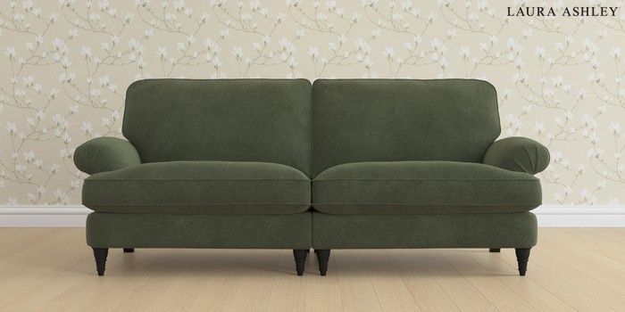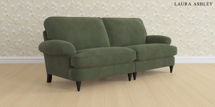 6.12.1 Buy Beaumaris by Laura Ashley 4 Seater Sofa Lundar Chenille Ivy Green Low Turned - Black from the Laura Ashley online shop Click here to use our website with more accessibility support, for example screen readers