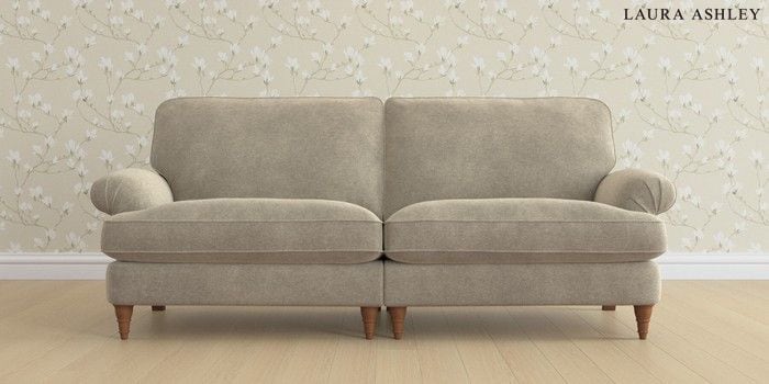 6.12.1 Buy Beaumaris by Laura Ashley 4 Seater Sofa Lundar Chenille Truffle Natural Low Turned - Teak from the Laura Ashley online shop Click here to use our website with more accessibility support, for example screen readers
