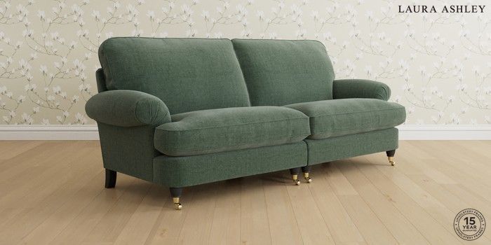 6.12.1 Buy Beaumaris by Laura Ashley 4 Seater Sofa Nantmor Fern Green Low Brass Castor - Black from the Laura Ashley online shop Click here to use our website with more accessibility support, for example screen readers