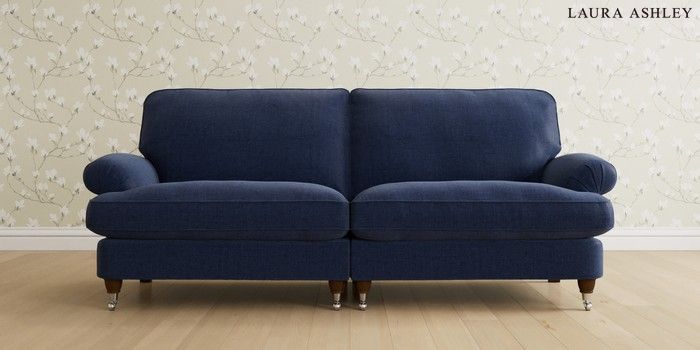 6.12.1 Buy Beaumaris by Laura Ashley 4 Seater Sofa Nantmor Midnight Navy Low Chrome Castor - Teak from the Laura Ashley online shop Click here to use our website with more accessibility support, for example screen readers