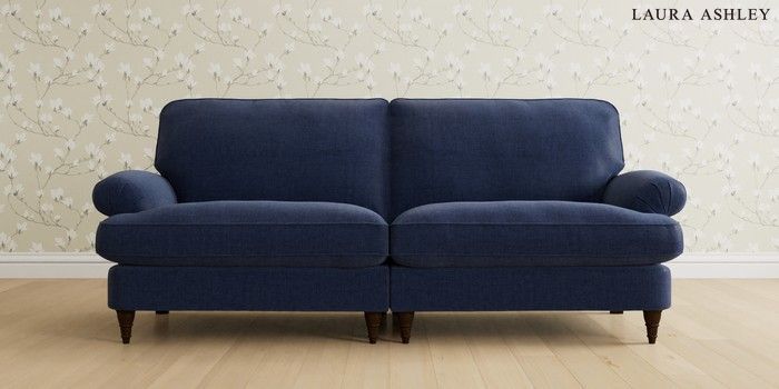 6.12.1 Buy Beaumaris by Laura Ashley 4 Seater Sofa Nantmor Midnight Navy Low Turned - Chestnut from the Laura Ashley online shop Click here to use our website with more accessibility support, for example screen readers
