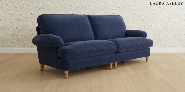 6.12.1 Buy Beaumaris by Laura Ashley 4 Seater Sofa Nantmor Midnight Navy Low Turned - Light Oak from the Laura Ashley online shop Click here to use our website with more accessibility support, for example screen readers