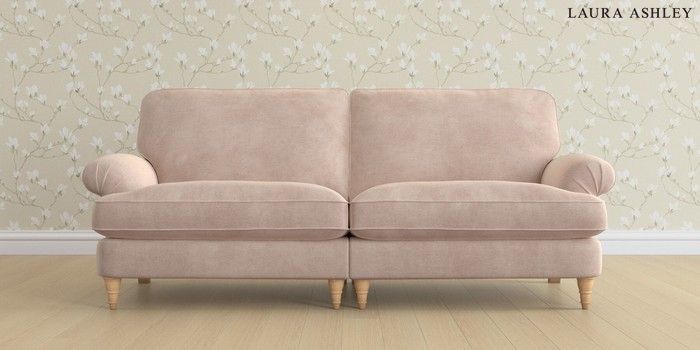 6.12.13 Buy Beaumaris by Laura Ashley 4 Seater Sofa Orla Chalk Pink Low Turned - Light Oak from the Laura Ashley online shop Click here to use our website with more accessibility support, for example screen readers