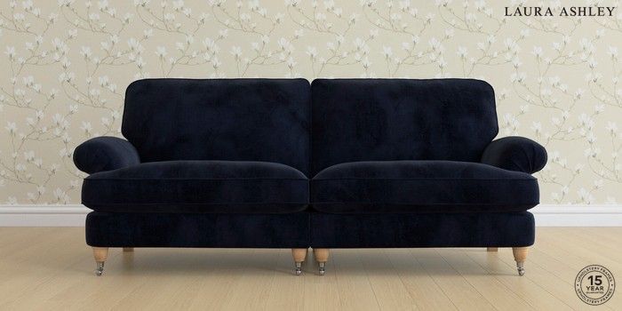 6.12.1 Buy Beaumaris by Laura Ashley 4 Seater Sofa Orla Midnight Navy Low Chrome Castor - Light Oak from the Laura Ashley online shop Click here to use our website with more accessibility support, for example screen readers