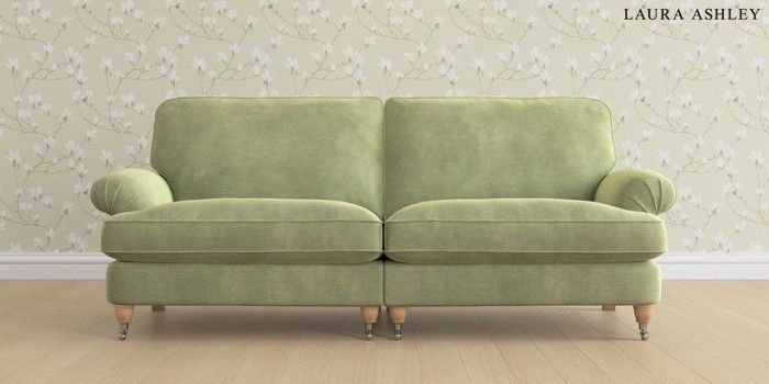 6.12.1 Buy Beaumaris by Laura Ashley 4 Seater Sofa Orla Pale Hedgerow Green Low Chrome Castor - Light Oak from the Laura Ashley online shop Click here to use our website with more accessibility support, for example screen readers