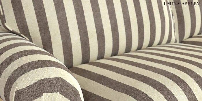 6.12.1 Buy Beaumaris by Laura Ashley 4 Seater Sofa Orla Stripe Dark Truffle Natural Low Brass Castor - Black from the Laura Ashley online shop Click here to use our website with more accessibility support, for example screen readers