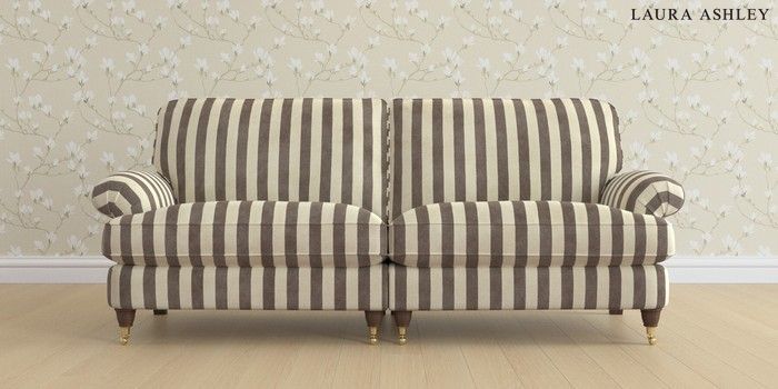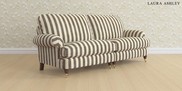 6.12.1 Buy Beaumaris by Laura Ashley 4 Seater Sofa Orla Stripe Dark Truffle Natural Low Brass Castor - Chestnut from the Laura Ashley online shop Click here to use our website with more accessibility support, for example screen readers