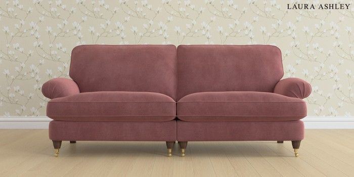6.12.1 Buy Beaumaris by Laura Ashley 4 Seater Sofa Peyton Plum Purple Low Brass Castor - Chestnut from the Laura Ashley online shop Click here to use our website with more accessibility support, for example screen readers