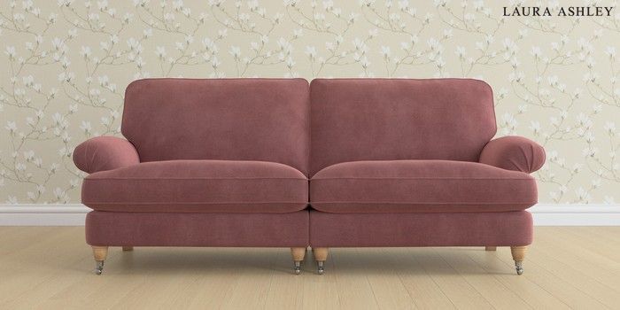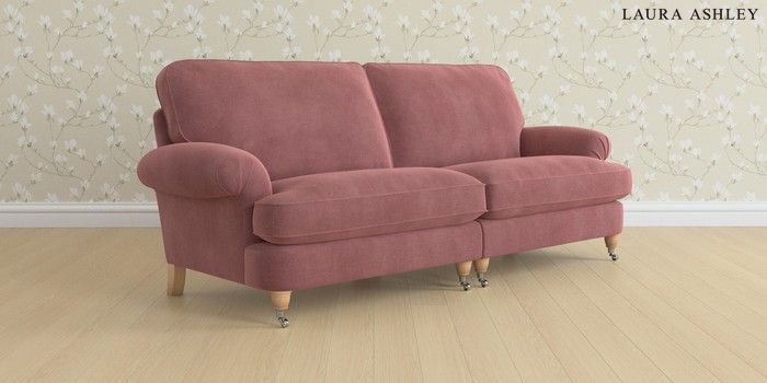 6.12.1 Buy Beaumaris by Laura Ashley 4 Seater Sofa Peyton Plum Purple Low Chrome Castor - Light Oak from the Laura Ashley online shop Click here to use our website with more accessibility support, for example screen readers