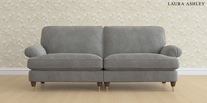 6.12.1 Buy Beaumaris by Laura Ashley 4 Seater Sofa Wooton Dark Steel Grey Low Brass Castor - Chestnut from the Laura Ashley online shop Click here to use our website with more accessibility support, for example screen readers