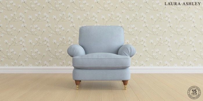 6.12.1 Buy Beaumaris by Laura Ashley Armchair Ailsworth Newport Blue Low Brass Castor - Teak from the Laura Ashley online shop Click here to use our website with more accessibility support, for example screen readers