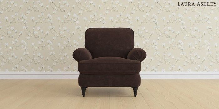 6.12.1 Buy Beaumaris by Laura Ashley Armchair Alwyn Velvet Chocolate Brown Low Turned - Black from the Laura Ashley online shop Click here to use our website with more accessibility support, for example screen readers