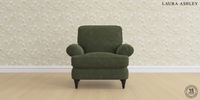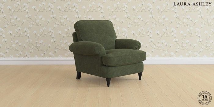 6.12.1 Buy Beaumaris by Laura Ashley Armchair Alwyn Velvet Ivy Green Low Turned - Black from the Laura Ashley online shop Click here to use our website with more accessibility support, for example screen readers
