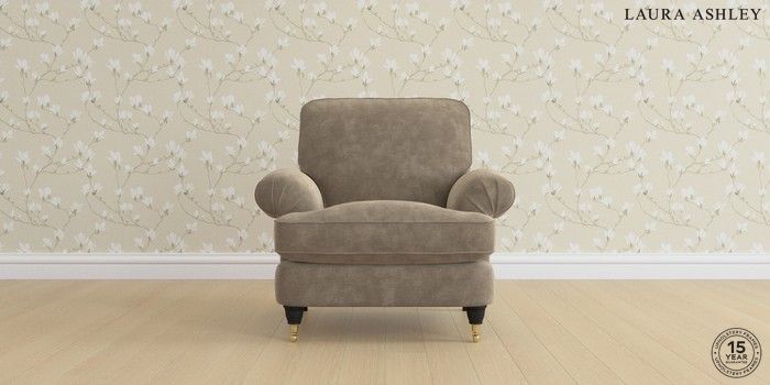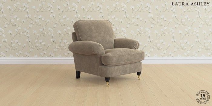 6.12.1 Buy Beaumaris by Laura Ashley Armchair Alwyn Velvet Truffle Natural Low Brass Castor - Black from the Laura Ashley online shop Click here to use our website with more accessibility support, for example screen readers