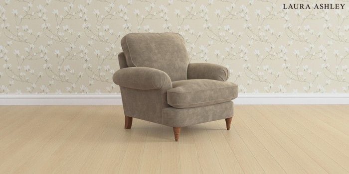6.12.1 Buy Beaumaris by Laura Ashley Armchair Alwyn Velvet Truffle Natural Low Turned - Teak from the Laura Ashley online shop Click here to use our website with more accessibility support, for example screen readers