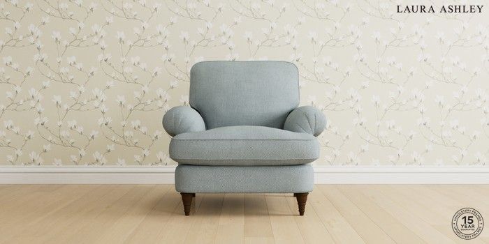 6.12.1 Buy Beaumaris by Laura Ashley Armchair Anneliese Seaspray Blue Low Turned - Chestnut from the Laura Ashley online shop Click here to use our website with more accessibility support, for example screen readers