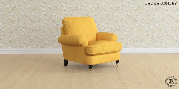6.12.1 Buy Beaumaris by Laura Ashley Armchair Bainton Ochre Yellow Low Brass Castor - Black from the Laura Ashley online shop Click here to use our website with more accessibility support, for example screen readers