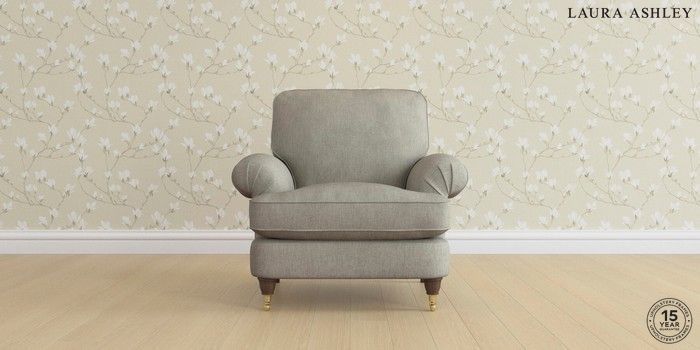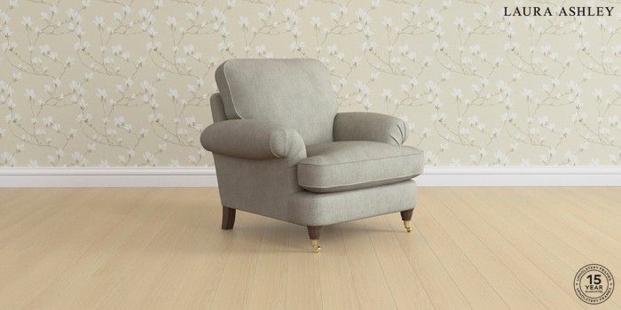 6.12.13 Buy Beaumaris by Laura Ashley Armchair Bainton Pale Steel Grey Low Brass Castor - Chestnut from the Laura Ashley online shop Click here to use our website with more accessibility support, for example screen readers