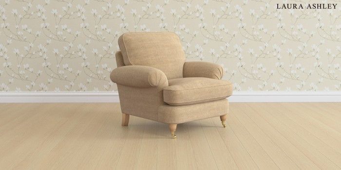 6.12.1 Buy Beaumaris by Laura Ashley Armchair Edwin Chenille Gold Natural Low Brass Castor - Light Oak from the Laura Ashley online shop Click here to use our website with more accessibility support, for example screen readers
