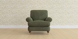 6.12.1 Buy Beaumaris by Laura Ashley Armchair Edwin Chenille Hedgerow Green Low Brass Castor - Chestnut from the Laura Ashley online shop Click here to use our website with more accessibility support, for example screen readers