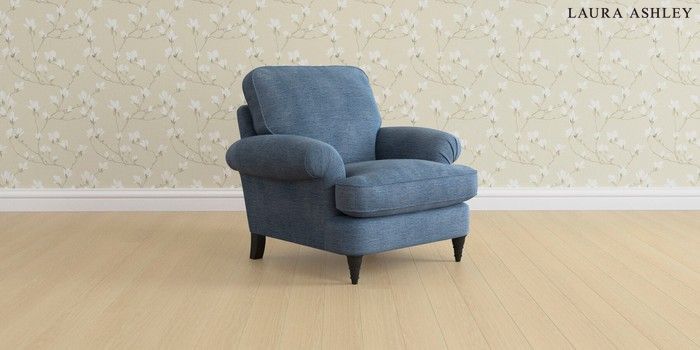 6.12.1 Buy Beaumaris by Laura Ashley Armchair Edwin Chenille Seaspray Blue Low Turned - Black from the Laura Ashley online shop Click here to use our website with more accessibility support, for example screen readers