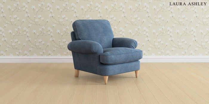 6.12.1 Buy Beaumaris by Laura Ashley Armchair Edwin Chenille Seaspray Blue Low Turned - Light Oak from the Laura Ashley online shop Click here to use our website with more accessibility support, for example screen readers