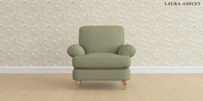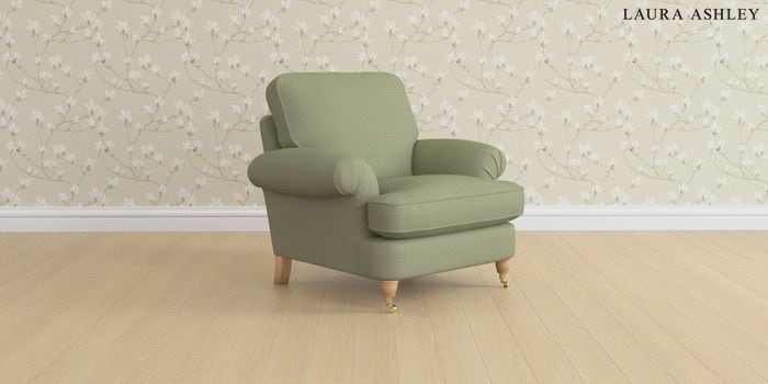 6.12.13 Buy Beaumaris by Laura Ashley Armchair Edwin Herringbone Hedgerow Green Low Brass Castor - Light Oak from the Laura Ashley online shop Click here to use our website with more accessibility support, for example screen readers