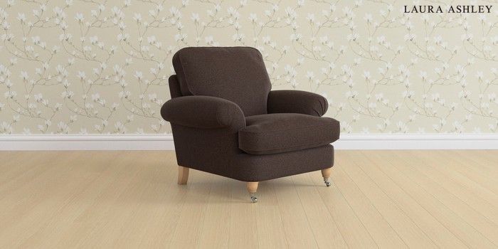 6.12.1 Buy Beaumaris by Laura Ashley Armchair Harley Chestnut Brown Low Chrome Castor - Light Oak from the Laura Ashley online shop Click here to use our website with more accessibility support, for example screen readers