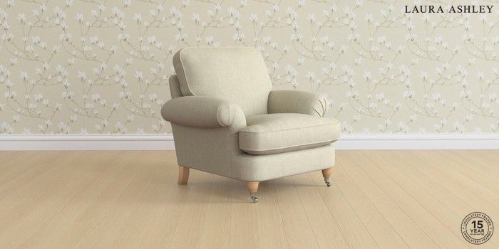 6.12.1 Buy Beaumaris by Laura Ashley Armchair Kinsham Natural Low Chrome Castor - Light Oak from the Laura Ashley online shop Click here to use our website with more accessibility support, for example screen readers