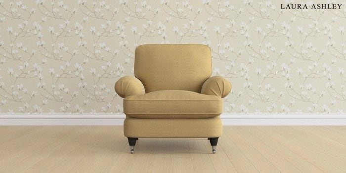 6.12.1 Buy Beaumaris by Laura Ashley Armchair Kinsham Ochre Yellow Low Chrome Castor - Black from the Laura Ashley online shop Click here to use our website with more accessibility support, for example screen readers