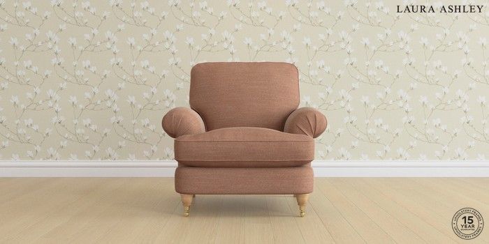 6.12.13 Buy Beaumaris by Laura Ashley Armchair Kinsham Rust Orange Low Brass Castor - Light Oak from the Laura Ashley online shop Click here to use our website with more accessibility support, for example screen readers