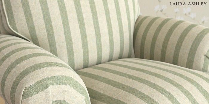 6.12.13 Buy Beaumaris by Laura Ashley Armchair Kinsham Stripe Hedgerow Green Low Brass Castor - Light Oak from the Laura Ashley online shop Click here to use our website with more accessibility support, for example screen readers