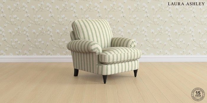 6.12.1 Buy Beaumaris by Laura Ashley Armchair Kinsham Stripe Hedgerow Green Low Turned - Black from the Laura Ashley online shop Click here to use our website with more accessibility support, for example screen readers