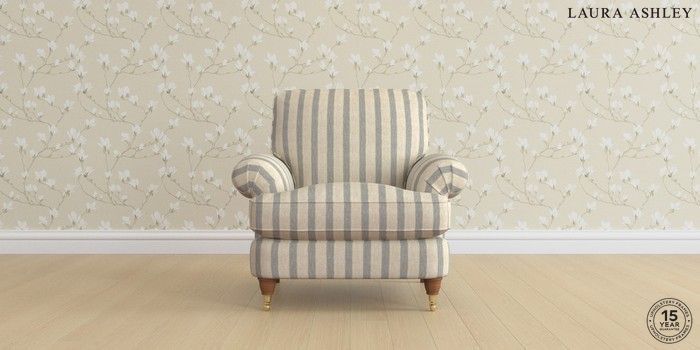 6.12.1 Buy Beaumaris by Laura Ashley Armchair Kinsham Stripe Seaspray Blue Low Brass Castor - Teak from the Laura Ashley online shop Click here to use our website with more accessibility support, for example screen readers