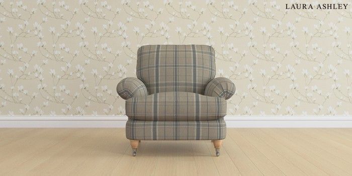 6.12.1 Buy Beaumaris by Laura Ashley Armchair Longstowe Check French Grey Low Chrome Castor - Light Oak from the Laura Ashley online shop Click here to use our website with more accessibility support, for example screen readers