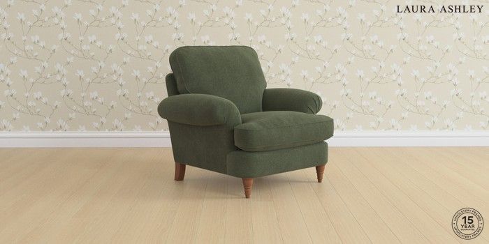 6.12.1 Buy Beaumaris by Laura Ashley Armchair Lundar Chenille Ivy Green Low Turned - Teak from the Laura Ashley online shop Click here to use our website with more accessibility support, for example screen readers