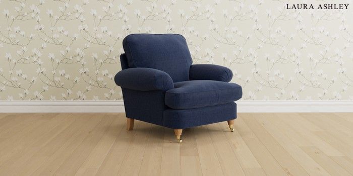 6.12.1 Buy Beaumaris by Laura Ashley Armchair Nantmor Midnight Navy Low Brass Castor - Light Oak from the Laura Ashley online shop Click here to use our website with more accessibility support, for example screen readers