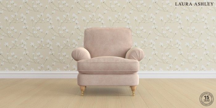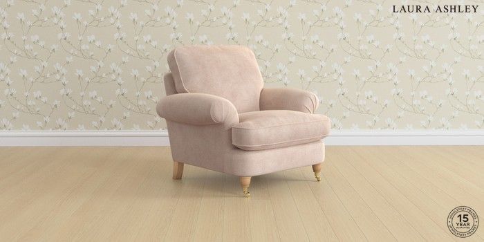 6.12.13 Buy Beaumaris by Laura Ashley Armchair Orla Chalk Pink Low Brass Castor - Light Oak from the Laura Ashley online shop Click here to use our website with more accessibility support, for example screen readers