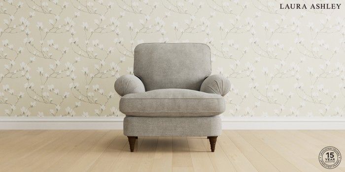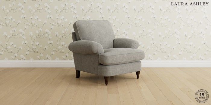 6.12.1 Buy Beaumaris by Laura Ashley Armchair Orla Pale Steel Grey Low Turned - Chestnut from the Laura Ashley online shop Click here to use our website with more accessibility support, for example screen readers