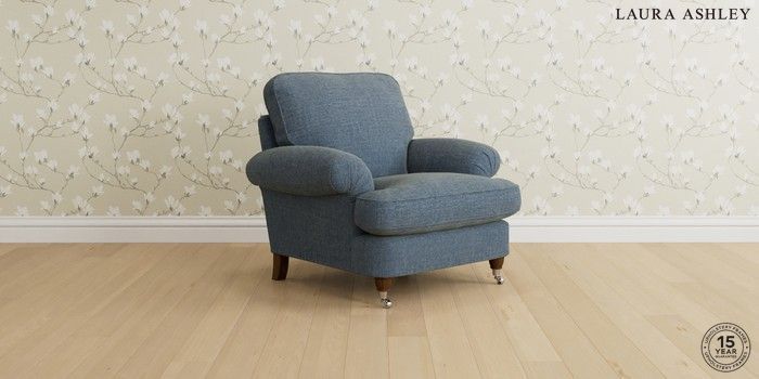 6.12.1 Buy Beaumaris by Laura Ashley Armchair Orla Seaspray Blue Low Chrome Castor - Teak from the Laura Ashley online shop Click here to use our website with more accessibility support, for example screen readers