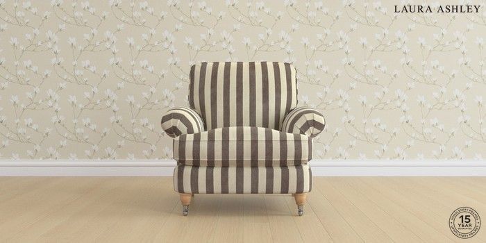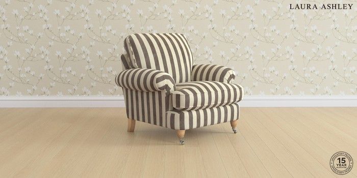 6.12.1 Buy Beaumaris by Laura Ashley Armchair Orla Stripe Dark Truffle Natural Low Chrome Castor - Light Oak from the Laura Ashley online shop Click here to use our website with more accessibility support, for example screen readers