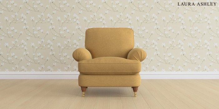 6.12.1 Buy Beaumaris by Laura Ashley Armchair Peyton Ochre Yellow Low Brass Castor - Teak from the Laura Ashley online shop Click here to use our website with more accessibility support, for example screen readers