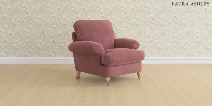 6.12.1 Buy Beaumaris by Laura Ashley Armchair Peyton Plum Purple Low Chrome Castor - Light Oak from the Laura Ashley online shop Click here to use our website with more accessibility support, for example screen readers