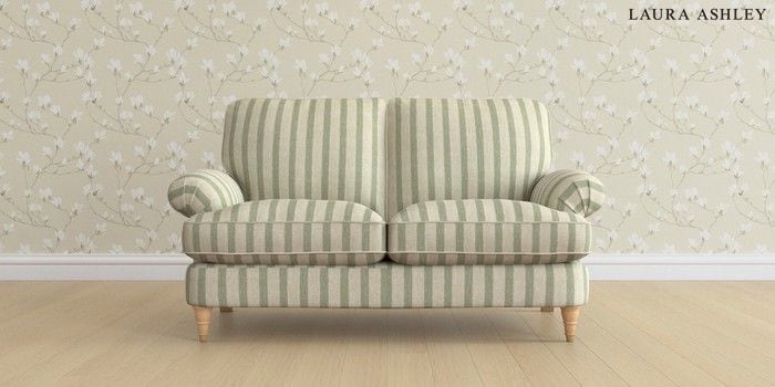 6.12.1 Buy Beaumaris by Laura Ashley 2 Seater Sofa Kinsham Stripe Hedgerow Green Low Turned - Light Oak from the Laura Ashley online shop Click here to use our website with more accessibility support, for example screen readers