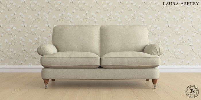 6.12.1 Buy Beaumaris by Laura Ashley 3 Seater Small Sofa Kinsham Natural Low Chrome Castor - Teak from the Laura Ashley online shop Click here to use our website with more accessibility support, for example screen readers