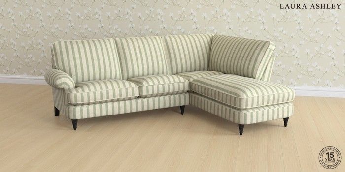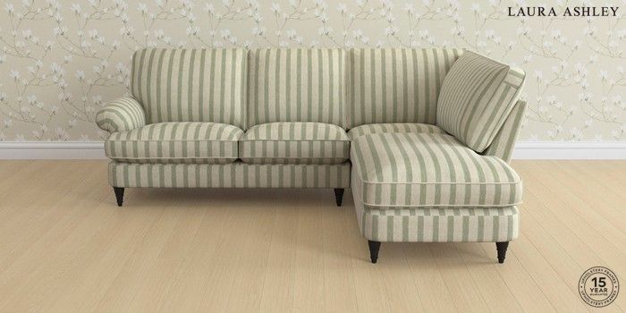 6.12.1 Buy Beaumaris by Laura Ashley Medium Sofa Chaise - Right Hand Kinsham Stripe Hedgerow Green Low Turned - Black from the Laura Ashley online shop Click here to use our website with more accessibility support, for example screen readers